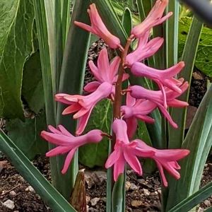 2年前に可愛い瓶で水耕栽培したヒヤシンスを頂いて、去年はあまり花がつかなくなってしまったので、地植えにしたら 今年は去年より花がつきました🌸(≧▽≦)