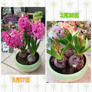 だんだんお庭が賑やかになってきました。 秋に植えたヒヤシンスが咲きました♪ ピンクミックスだったので球根では色が分からなかったので適当に植えました。 淡いピンクが可愛い😍