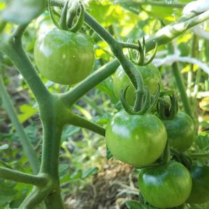 ミニトマト❗️赤くなるの楽しみ~。二本仕立てにするつもりが気づいたらジャングルに‼️