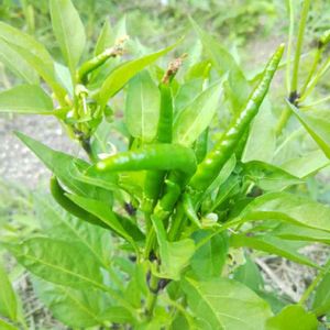いのしし避けになればと植えた唐辛子!実がついてるー🎵