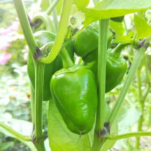 パプリカ花が咲いたら~🎵子供が歌ってるのを聴いて植えてみたパプリカにも実がなってる❗️色づくのはまだまだ先かな~