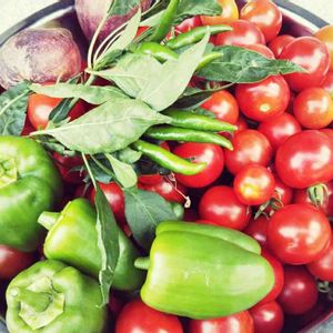 台風が来る前に収穫したよ!ミニトマトと青唐辛子とパプリカといちじく。 ミニトマト数えたら180個もあったわい!