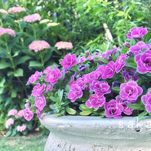 スーパーベル ダブルピンクリップル 先日の大嵐で雨風を凌ぎきれず満開直前で切り戻す羽目になりました💦 次の満開を目指します!