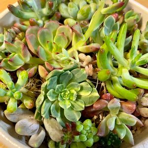 多肉ちゃんの寄せ植え❗️ 目も手も疲れたーーー💦 せっかく頑張ったけど、ちょっと地味だなぁ…⤵️