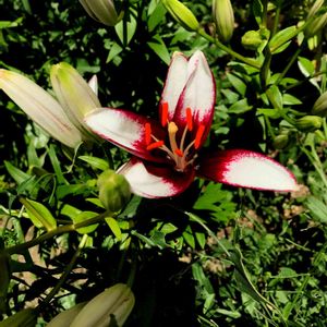 鮮やかに咲いたのは 二年目の球根の、スカシユリ🥰 優秀だわ(*’∪’*)