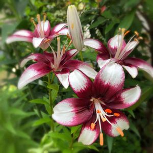 こんにちは😃 梅雨入りして4日目 まぁよく降りますね 毎日雨降り☂️☔️ 近年稀に見る今年の梅雨 昨日撮影 スカシユリ「カフェノワール」です 今年は周囲のレースフラワーやマトリカリアが去年よりずっと背が高くなったので、隠れるように咲いています