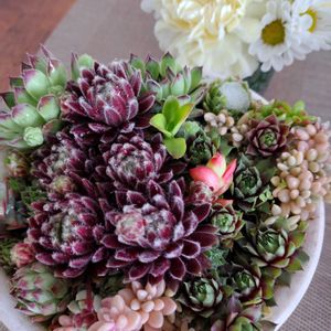 新年初up🥗です🤗 多肉の寄せ植えの大先輩に教わりながら頑張りました(^-^)/ セダムchanの明るい色がアクセントになっています😊 今年もよろしくお願いします(*^^*)