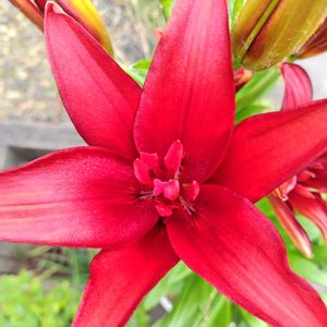 今日のお花 ✿ユリ✿ 昨年花友さんから球根頂き咲くのを楽しみにしていました🎶🍀😍🎶 真っ赤な色にビックリです🤗