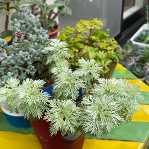 先日の寄せ植えよりも✨主人公なオウゴンアサギリソウです💕 モコモコ ふわっふわ😆