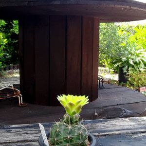 一昨日の晴れた日 日に当てようと外に出しっぱのサボ 屋根下に入れて、 写真送ってと 息子にお願いしたら これ来ました。 花が見たかったんだけど😅 まあいいか。