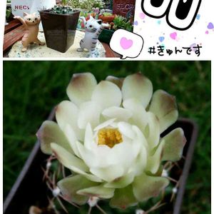 咲いた💖 ギムノカリキュームの初のお花です。 真っ白でもなくいい色で嬉しいです。 幸せ♡(*˘˘*).。.:**