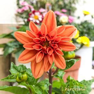 別の品種のダリアさんも 同時に今朝から咲き始めました🧡