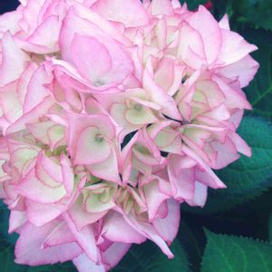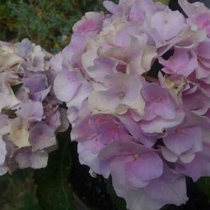 ★マリーアントワネット★ スーパーで出会ったアジサイ。 名前は書いてなかったけど、マリーアントワネットと思われます。 最初は縁のピンクが濃く、次に全体的にピンクになり、今は少し緑がかってきました。 色が変わりながら長く楽しめるアジサイは素敵です。