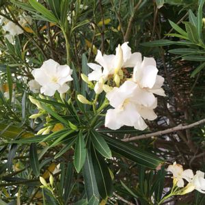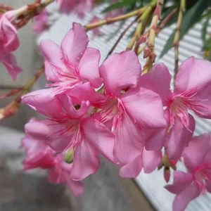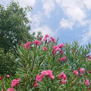キョウチクトウも強い日差しの元、かがやいてました。 みどりのはっぱと映えますね😉