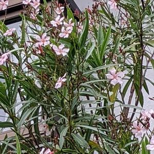 夾竹桃🌳 キョウチクトウ🌸🌸 よそ様庭 爽やかで優しい色あい‥見惚れます♡ 最近では、庭や街角で見かける事がめっきり減りました。 子供の頃は夏と言えばキョウチクトウ‥くらいに赤白を常に目にしたのですが🤗