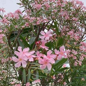 キョウチクトウ(夾竹桃)の花がいっぱい咲いていました。 薄ピンク色が素敵です。