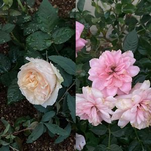 2021.5.19雨上がりの夕方のウオーキングにて。 バラ2種。品種は分かりますか?