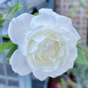 バラ(薔薇) 蕊の部分も花びらに隠れているので、全体真っ白なバラです🌹 まだ花びらの汚れもほとんど無くてとても綺麗です🤍