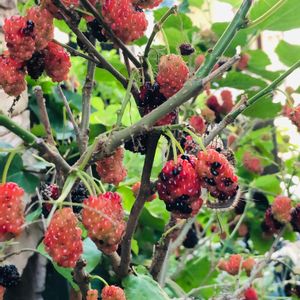 マルベリー 実りすぎて(^_^;) 枝が地面つきそう💦 かなり実がついてます。