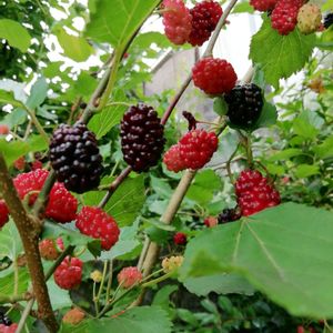 2022年5月挿し木、急成長したので、地植えしていたマルベリーに、初実です。