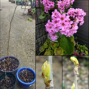 ヒマラヤユキノシタ マルベリー(桑いちご) 今朝、草取りをしていると、隣組の方が声掛けして下さり、会話の中で果物の話になり、マルベリーの挿し木があるから、あげるよ。 との事で伺うと、3本抜いて下さいました。 門の前に、ヒマラヤユキノシタが綺麗に咲いていたのでパシャリ! マルベリーを鉢植えにしました 長いのは、根が半分程切れていたので、根付くかどうか分からないけれど、実もの大好きの私は、子供の頃、良く食べたので何年経てば実がなるのか、とても楽しみです☘️🩷🌿🍇