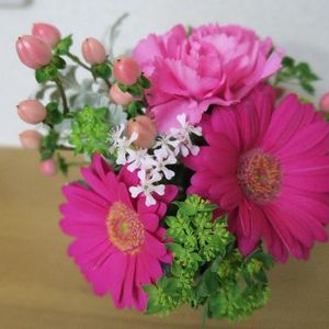 お客様からお花を頂いたので受け付けに飾りました。 とても綺麗なカ-ネ-ションとガ-ベラ花があると華やかでいいですね。
