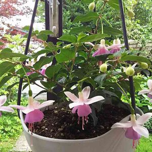 可愛いピンクのフクシア💞 吊り鉢を囲んで踊る妖精のよう🎶✨
