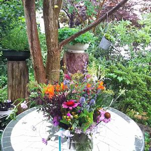 ヘムレンさん達の"手仕事展"でフラワーアレンジメントの 体験コーナーも設けるというので庭の花を適当に 集めて持っていきました 💠 ※ 買ったお花と混ぜて使って貰えたみたいで、きょうも 持って行きます