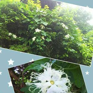実は困ってます… 先日アップしたカラスウリの花 綺麗で好きなんですが、花と同じく葉っぱも大きくて アケビ蔓みたいに木々に這い上り、木を覆ってしまうのです😰 ツツジを覆ってるのが分かりますか❔