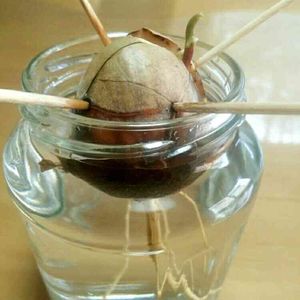 アボガド水栽培。1ヶ月と2日。 芽が出てきたよ〜! そろそろつ土に植えたほうがいいのかな?