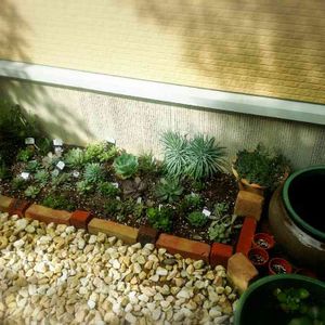 1ヶ月前ぐらいに作った多肉専用花壇✨ 台風にも負けず、少しづつ根付いてきたみたい❤ 楽しみだなぁ(*^^*)