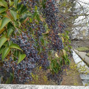 果実は核果状で 直径8~10mmの ほぼ球形で〰︎ 10~12月に黒紫色に熟す 唐鼠黐(とうねずみもち) モクセイ科