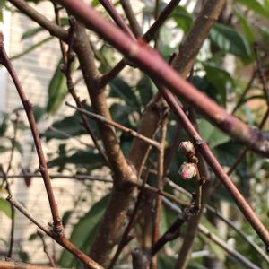 桃🍑も蕾がピンクの色を見せて来てる〜〜