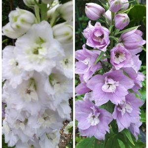我が家の庭❤️ デルフィニウム😆👌 白色とピンク色開花💠 しました🙌❤️ 雨☔模様ですが綺麗です🎵