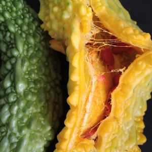 ゴーヤ🥒🍃 完熟になり パックリ👄を開け中の種が見えていました 種のまわりについている 赤色のゼリー状 甘いょ💕 2025.9-44