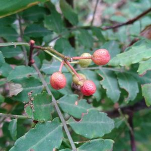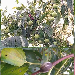 ナツメ🟢🍃 見上げた高い枝先に実り 下の枝には🟤? 🐤うずらの卵🥚じゃないよ イラガの繭 中にはサナギが入ってる💦 手では取れない硬い殻 ✂ハサミで取り除き その後 ✂ハサミで割潰し🤢ました 2025.10-8