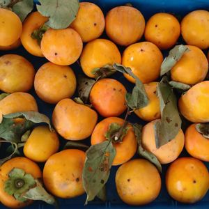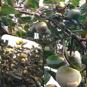 食べた次郎柿の種🤎から育って 今年で7年目 まだ薄黄緑色っぽいのは枝に残して 昨日初収穫になりました 小ぶりですが 甘〜い😋💛 2025.10-73