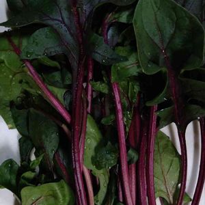 菜園だより🌱 まな板サイズの 赤茎ほうれん草・みやび💜 根元を切り落とし水洗い これで 1株 👩🍳 暖かさで一気に大きく 花咲く前に食べ終えるかな……🙃