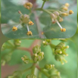 山椒の新葉を🌿👌摘みに ふと見ると 苗木を植えて3年が経ち 初めての 不思議な花❁💛🌿が咲き 実🟢🌿ができ始めてました