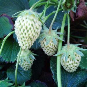 野生化した🍓 実がここまで育って大きくなりました 早く赤色にならないかな…… 形からすると……章姫🤍🍓🤍っぽい