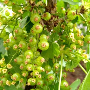 レッドカラント(フサスグリ)カシス 一枝ごとに 鈴生り状態 たくさんの実になり始めました💚🌿 🔴赤色に変化する前に 不織布を掛けて 野鳥🐦対策をしましょうね👩🌾