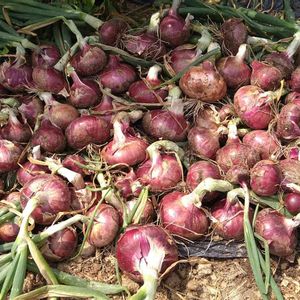 菜園だより〜👩🌾 種から育てた🔴赤玉ねぎ🧅🟣 雨が降る前に…… 引っこ抜いた(; ・`ω・´)💦