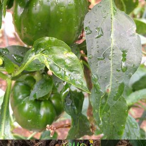 菜園だより〜👩🌾 初生り🫑ピーマン?パプリカ?🤔 どっちだったかな…… 近くに植えて あれれ……どっち? 大きさから パプリカっぽい🤭