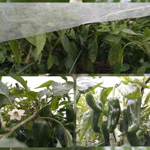 菜園だより〜👩🌾🌿 この一角だけ 夏の名残り 種から育てた大きな甘唐辛子達 ❀花も🫑実も まだまだ頑張ってるから…… 不織布を掛けてあげました 菜園用のハウスが欲しいなぁ〜🙃 いつまで 採れるかな🙄