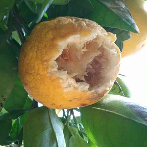 採らずに置いた 一昨年からのグレープフルーツ🍊 完熟して 甘さが増したのか 野鳥達に ついばまれていました 去年からの🍊実は 後ろでツヤツヤ 弥生(やよい)…… みほ(300)