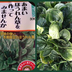 菜園だより👩🌾 去年秋にぱらぱら🖐種まきした 【ほうおう】と言う名前のほうれん草 不織布をめくって見ると そろそろ食べ頃かな 本当に甘いのかな(?_?) 弥生(やよい)…… ここのほ(900)