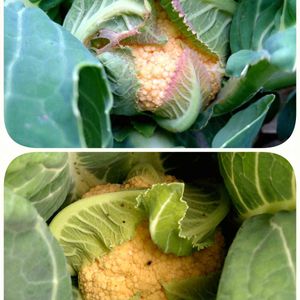 菜園だより〜👩🌾 オレンジカリフラワー美星 さっそく 収穫🌟✨🔪 🔰9/8に種まきして 無事 収穫できました💛 みどりのまとめ 🌟 アップしました