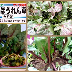 菜園だより〜👩🌾 サラダほうれん草💜みやび 食べ頃に育ちました 不織布を掛けていたので 若干 色付きが薄いかな🙄