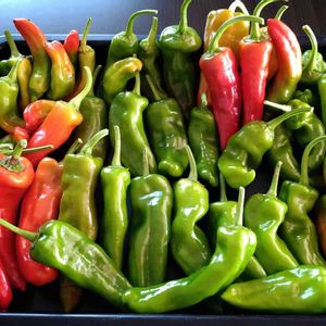 菜園だより〜👩🌾 🫑🌶️ 収穫遅れもあり色が赤色になってた❤️💛💚 肉厚で甘みのある 大きなしし唐辛子