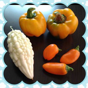 ミニミニ菜園だより👩🌾 🫑🥒💛収穫✂ 鉢植えのパプリカ 袋栽培のホワイトゴーヤ 自然が作った 綺麗なフォルム✨